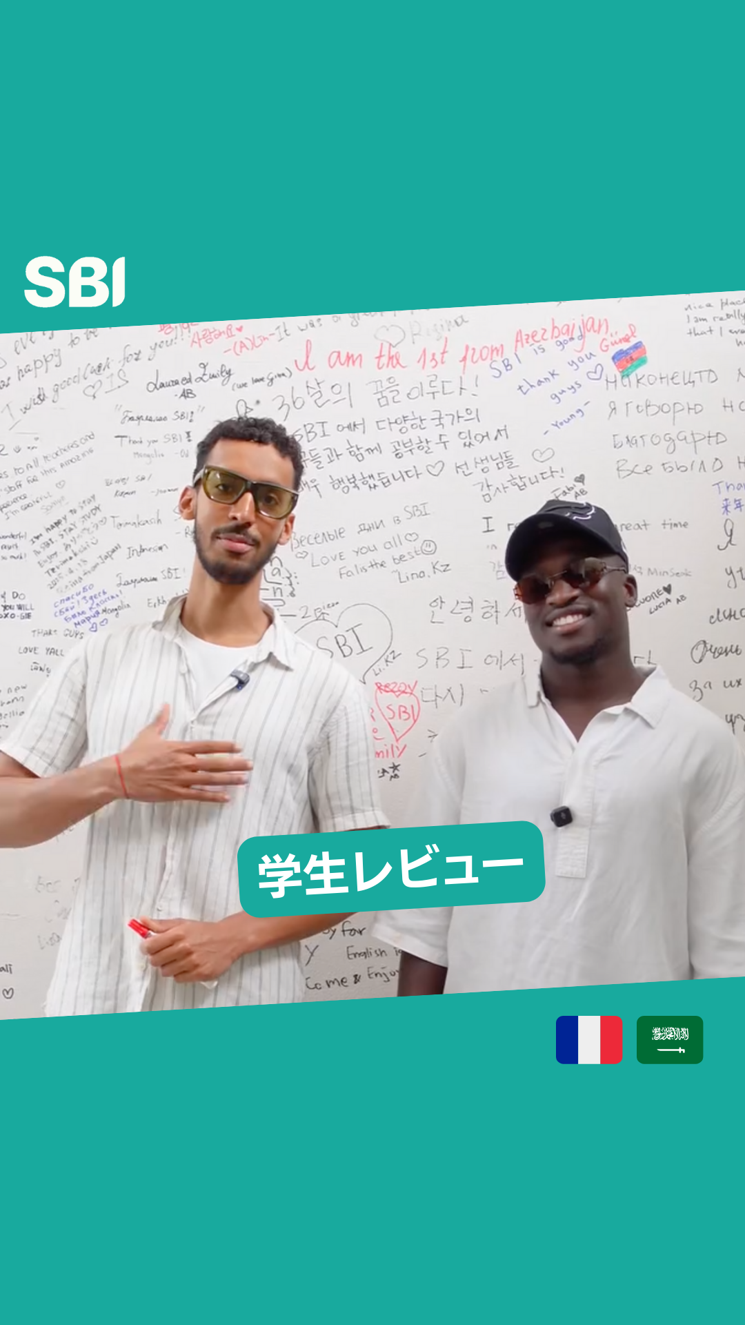 SBI には、多様な国から留学生が集まる国際色豊かなコミュニティがあります。 すべてのクラスは多国籍構成となっており、特定の国籍が多数を占めないように配慮されています。 これまでに、フランス、イタリア、韓国、日本、カザフスタン、ロシア、ブラジル、チリ、トルコ、サウジアラビアなど、世界各国から学生が集まっており、さまざまなバックグラウンドを持つ仲間と一緒に学ぶことができます。